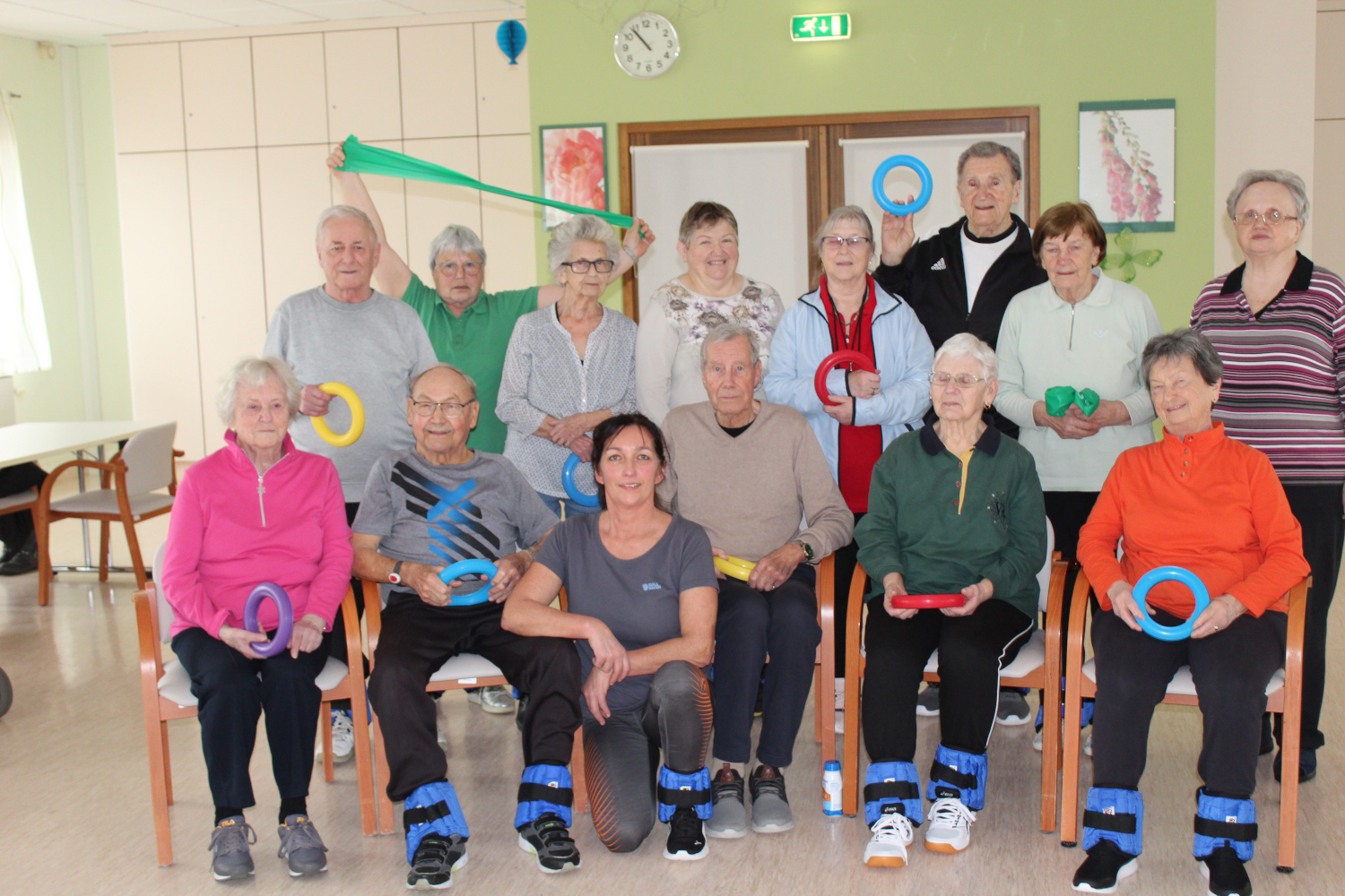 Direkt neben unserem Klaraheim bieten wir in der Residenz Chiara auch für alle rüstigen Seniorinnen und Senioren betreutes Wohnen an. Dort hat jetzt (am Dienstag, den 5.3.) einer unserer zweimal im Jahr stattfindenden Gesundheitskurse stattgefunden. Die Kursteilnehmer*innen waren mit Feuereifer dabei, denn gerade beim betreuten Wohnen ist es wichtiger denn je so gut es geht weiter im Alter mobil zu sein und damit auch die Selbstständigkeit so lange als möglich zu behalten. Und genau darum ging es im Kurs „Tritt sicher durchs Leben!“. Zusammen mit der engagierten und auch zertifizierten Kursleiterin wurden anschaulich Übungen gezeigt, wie die körperliche Fitness, Kraft und auch das Gleichgewicht gestärkt werden können und so wichtige Vorrausetzungen geschaffen werden, das sichere Gehen und damit die Mobilität im Alltag zu stärken. Herzlichen Dank an die Kursleiterin, die über den Sportverein Altötting zu uns in die Einrichtung kam, für ihre wertvollen Tipps und ihren tollen Kurs, der allen sichtlich Spaß gemacht hat.