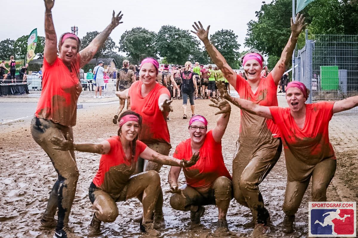 Hochmotiviert bei nicht so warmen Temperaturen und windigem Wetter startete die sportliche Truppe um 16 Uhr mit dem Warm up, was allen schon einen riesigen Spaß bereitete. Nach dem Startschuss folgte gleich das erste der 16 Hindernisse: Ein Wasserbecken (bis zu den Knien), das schon erahnen ließ, auf was sich die Mädels bei den nächsten Hindernissen alles gefasst machen mussten. Gleich darauf schwammen alle unter einem Banner durch mit dem Ergebnis, dass alle klatschnass waren. Das Balancieren auf Hohlbalken, unter Reifen durchtauchen im Schlammbecken oder auch Rückenschwimmen unterm Gitter im Schlammwasser waren die Challenges, die es unter anderem zu meistern galt. Den meisten Spaß hatten alle beim Rutschen der großen Schlammrutsche und dem Schlammkrabbeln, denn alle waren sich einig: Schmutziger können sie gar nicht mehr werden, also alles egal, und auf geht’s – einfach nur durchziehen. Durchgezogen haben es alle und eines ist sicher: Dieser Run ist unvergesslich. Und der schöne Nebeneffekt der Teilnahme sei noch erwähnt, ein Teil des Erlöses wird an Brustkrebs Deutschland e.V. gespendet, bisher kamen so schon 90.000 Euro zusammen. Unsere sechs teilnehmenden Mitarbeiterinnen hoffen, dass sich im nächsten Jahr noch mehr Mitarbeiterinnen auf das Abenteuer „Muddy Angel Run“ einlassen werden, denn der Spaß war riesig.