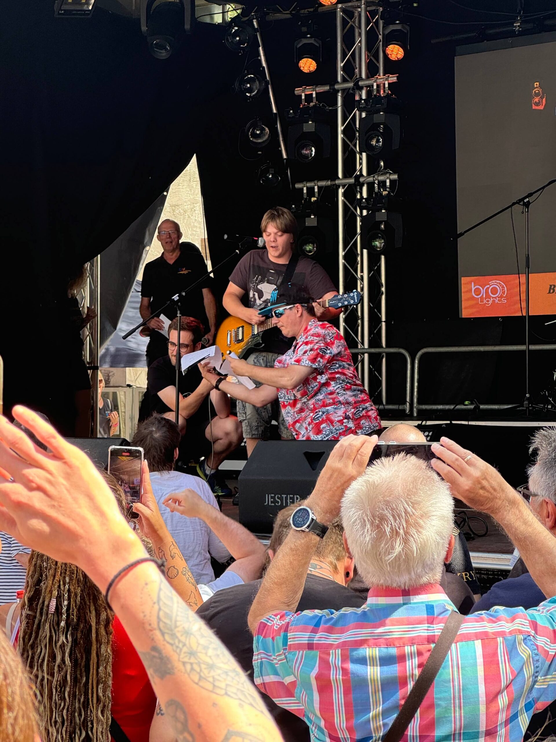 Der Landauer Sommer 2024 sorgte mit 61 Acts auf insgesamt acht Bühnen für ein abwechslungsreiches Programm. Mit dabei: Julian Möhlig und Julian Moldt von der Wohngemeinschaft St. Pius, die die Bühne sprichwörtlich gerockt haben: Beide sind auf der Local Hero Stage am Stiftsplatz aufgetreten und haben ihre Lieblingslieder vor einem begeisterten Publikum präsentiert. Am Samstag, den 13.07.24, um 15 Uhr war es soweit: dann hieß es Bühne frei für die beiden mutigen Interpreten. Julian Möhlig sang „When September ends“ von Green Day, begleitet mit der Gitarre von Julian Moldt, der im Anschluss selbst ein Solo gab. Er sang das „Pfalzlied“. Auf der Bühne war das Lampenfieber schnell vergessen, schon nach den ersten Takten fühlten sich beide wie Rockstars. Beide hatten im Vorfeldviel geübt und meisterten ihren Auftritt mit Bravour. Dafür gab es ordentlich Applaus vom Publikum. Ein tolles und unvergessliches Erlebnis! Organisiert wurden die Auftritte von der BAF-Südpfalz.