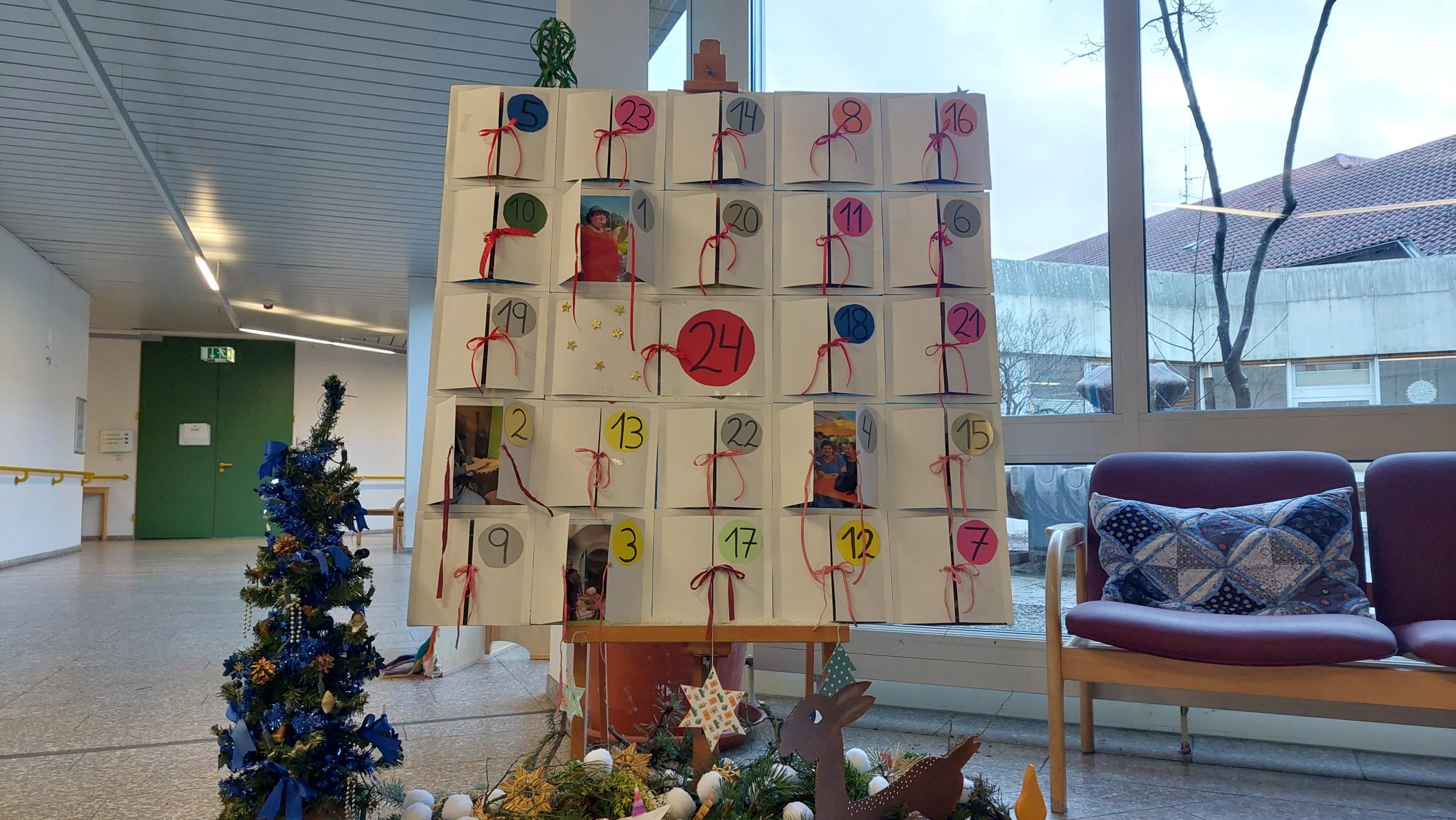 Jochen Schweitzer fände unseren selbstgemachten Adventskalender für unsere Bewohner*innen im Foyer sicher auch ziemlich gelungen, denn das Besondere: Hinter jedem Türchen befindet ein Fotos mit schönen Momenten der Bewohner*innen. Über das Jahr haben sie viel erlebt – von kleinen Dingen wie dem Anpflanzen eines Gemüsebeetes bis hin zu großen Erlebnissen, wie zum Beispiel dem internationalen Judo-Wettkampf in den Niederlanden. So sind sie selbst der „Star“ dieses Kalenders und mit jedem geöffneten Türchen kann an den schönen erlebten Moment zurückgedacht werden. Besten Dank für diese schöne Idee und Umsetzung an die Mitarbeiter*innen der Tagesförderstätte 4, die mit diesem lebendigen Adventskalender voll mit Aktionen, Angeboten und Erlebnissen wunderbare Erinnerungen ins St. Paulus Stift holen, die so gemeinsam geteilt werden.