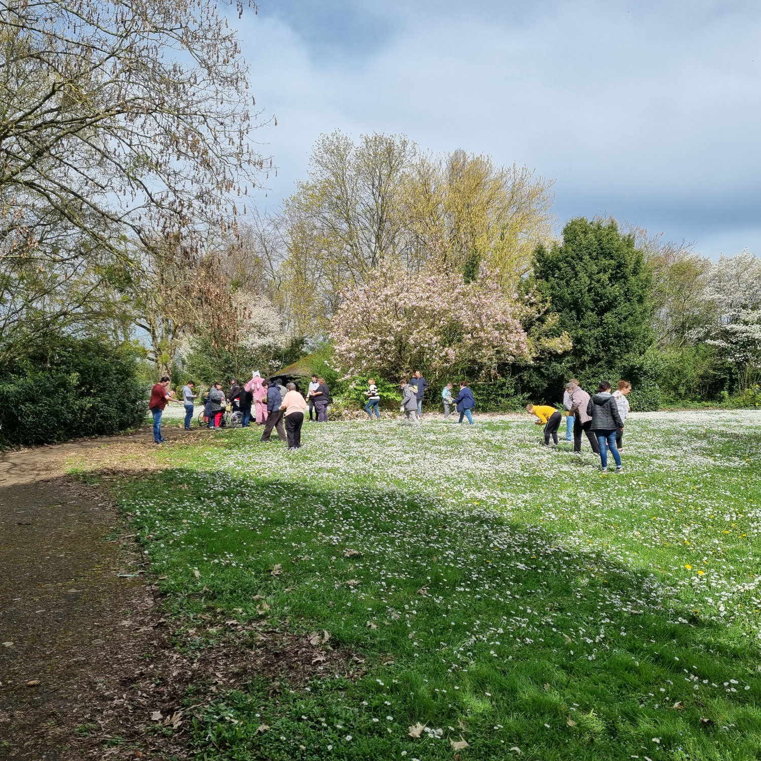 Nicht nur viele Süßigkeiten wurden am Ostersonntag (31.03.2024) in unserem schönen großen Park versteckt, sondern zur Freude aller war auch ein lebensgroßer Osterhase in seinem lustigen rosafarbenen Kostüm vor Ort, der bei allen für Erheiterung sorgte. Ausgestattet mit Säckchen, Körbchen oder Tüte kamen sehr viele Bewohner*innen des St. Paulus Stifts der Einladung der Tagesförderstätte sehr gerne nach, um die von den Mitarbeiter*innen liebevoll versteckten Leckereien zu suchen. Um Punkt 14 Uhr wurde der Park gestürmt und es wurde gesucht was das Zeug hielt. Alle hatten riesigen Spaß. Herzlichen Dank an die Mitarbeiterinnen der Tagesförderstätte für diese lustige Osteraktion und ein spezieller Dank auch an den „Osterhasen“ in seinem Kostüm, der gerne für die Bewohner*innen diesen Spaß mitgemacht hat. Eine solch große gemeinschaftliche Aktion gab es noch nie an Ostern, aber da es so schön war, wird es im nächsten Jahr bestimmt eine Wiederholung geben.