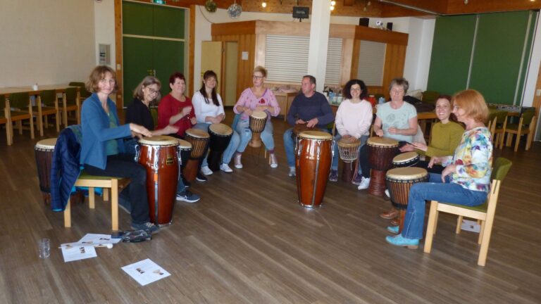 Unser Team der Musiktherapie hat schon oft für unsere Bewohner*innen Trommelworkshops organisiert. Warum also nicht einen solchen Workshop für die Mitarbeitenden anbieten? Denn die positiven Eigenschaften des gemeinsamen Trommelns auf