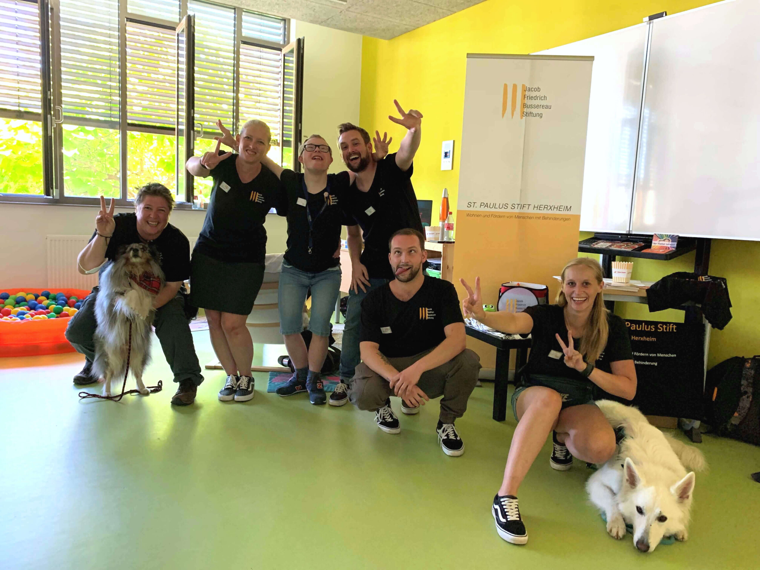Das Gedränge war groß an unserem Stand auf der Ausbildungsmesse der Carl-Benz-Gesamtschule in Wörth am Samstag, den 2.7.2022 und das lag nicht nur an unserem sympathischen Ausbildungsteam, sondern vor allem auch an Henry und Benito, zwei Therapiehunde, die mit auf die Messe durften. Neben Fragen zum Ausbildungsberuf zur/zum Heilerziehungspfleger*in gab es dank der tierischen Begleiter natürlich auch zahlreiche Fragen zu den Aufgaben und Einsatzgebieten von Therapiehunden. Voller Engagement und Tatendrang gab Jan, der im Theresia Ohmer Haus lebt, mit seiner charmanten und gut gelaunten Art sein Bestes, zahlreiche Schülerinnen und Schüler an unserem Messestand zu locken. Er verteilte unsere Flyer und erklärte allen, wo unser Messestand zu finden war. Auch Daniel, der wie Jan im Theresia Ohmer Haus lebt, war mit dabei in Wörth. Der Klassensaal wurde wieder in ein cooles Bewohnerzimmer mit Switch, Sessel, Lavalampe und Co. verwandelt. Alle Fragen wurden von unserem Messeteam gerne beantwortet, darunter auch zum Beispiel Fragen zu einem Schnupperpraktikum in den Sommerferien, noch freien Ausbildungsplätzen oder eines Vorpraktikums. Die gute Nachricht: Alles ist noch möglich, auch Ausbildungsplätze können noch angeboten werden. Bei Interesse einfach bei uns im St. Paulus Stift nachfragen, wir helfen gerne weiter. Am 17.9.2022 freuen wir uns wieder auf die nächste Ausbildungsmesse „Tag der Berufe“, die in Rülzheim stattfindet.